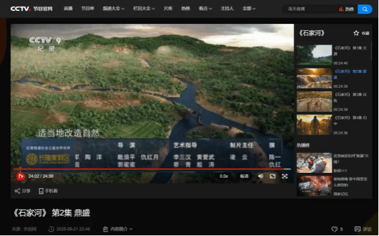 据悉,纪录片凭借独特的学术视角与精良制作,取得亮眼成绩。收视率达总台2025年时段份额考核指标120%,并荣登央视新闻客户端周末看点推荐榜单十大推荐节目第三位。《石家河》纪录片被纳入国家广播电视总局机关大楼展播,并作为宣传片推荐至国铁列车播放。获评2024年度湖北广播电视学会“创新推优”电视纪录片一等奖。北京大学历史文博学院一级教授赵辉等多位国内顶级考古专家,湖北省人大常委会副主任杨云彦纷纷为影片点赞。