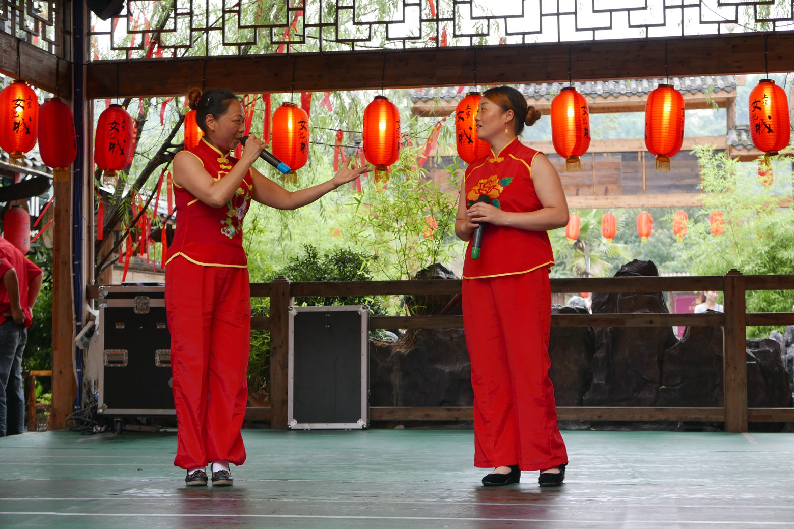 中午午饭休息过后,下午4点我们来到了恩施独具特色的女儿城,传统是这里是当地中国情人节时当地土家人相亲的地方。刚走进这个女儿城,映入眼帘的是各具特色的土家酒馆,许多红色的装饰给人一种热情的感觉,跟随导游的步伐我们体验了恩施的茶文化,我们还有幸品尝到了杨青老师亲手泡制的当地特色茶。