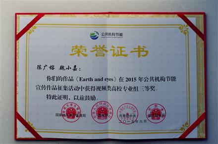 色色视频 代表学校参加2015年公共机构节能宣传作品征集活动,获评“优秀组织奖”,研究生陈广榕、魏小嘉的作品《Earth and Eyes》获得视频类高校组三等奖。本届大赛由由国家机关事务管理局、教育部、团中央、国家粮食局联合举办,涉及节水、节电、节粮以及节能环保等主题。