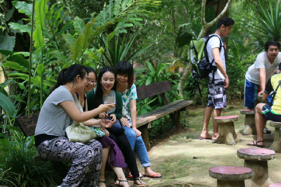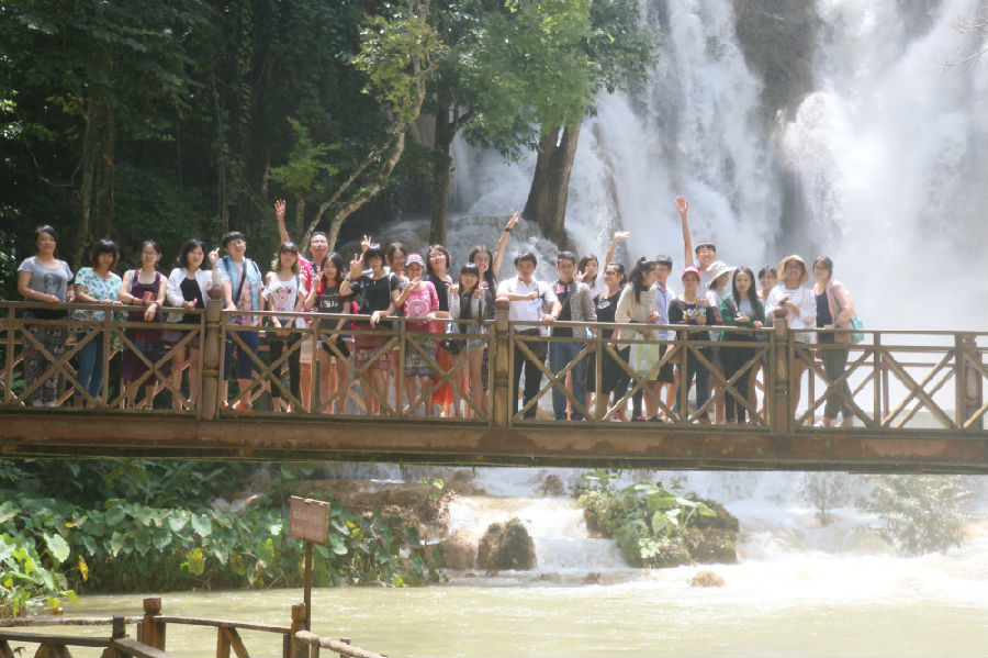 9月10日,苏发努冯大学建筑学院师生邀请老挝写生组一同参观琅勃拉邦自然景观关西瀑布。光西瀑布景色瑰丽,沿山路上行,时而涉水而行,沿途交流。午间,苏发努冯大学建筑学院师生与琅勃拉邦写生小组在瀑布前共进老挝传统午餐,回途中,苏发努冯大学建筑学院老师向我们介绍了当地传统的傣族民居。