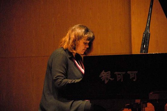 纳内米娃 玛丽娜是乌克兰青年钢琴家,艺术学博士,曾于1998年获得乌克兰卢甘斯克青年演奏家比赛第一名,图为纳内米娃 玛丽娜在艺媒音乐厅进行钢琴演奏。(摄影/王素萍)