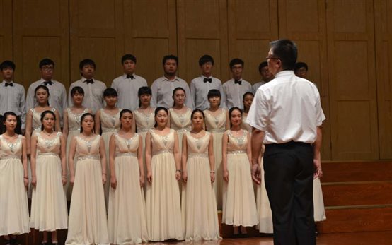 音乐系师生组成。图为星空合唱团在成立仪式上进行汇报表演,合唱团指挥由余磊老师担任。(摄影/王江涛)