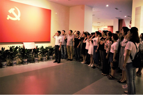 学院全体教职工党员在中国共产党纪律建设历史陈列馆前合影