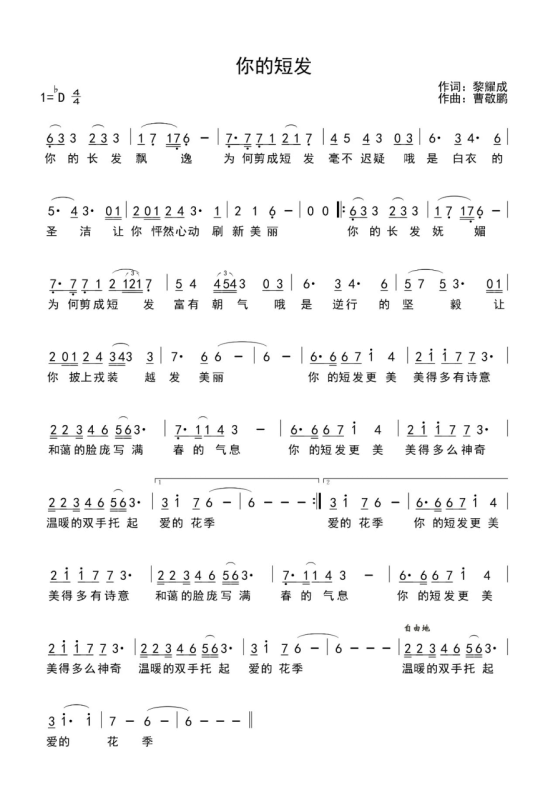 《你的短发》由中国音乐家协会黎耀成作词,中国地质大学(武汉)色色视频