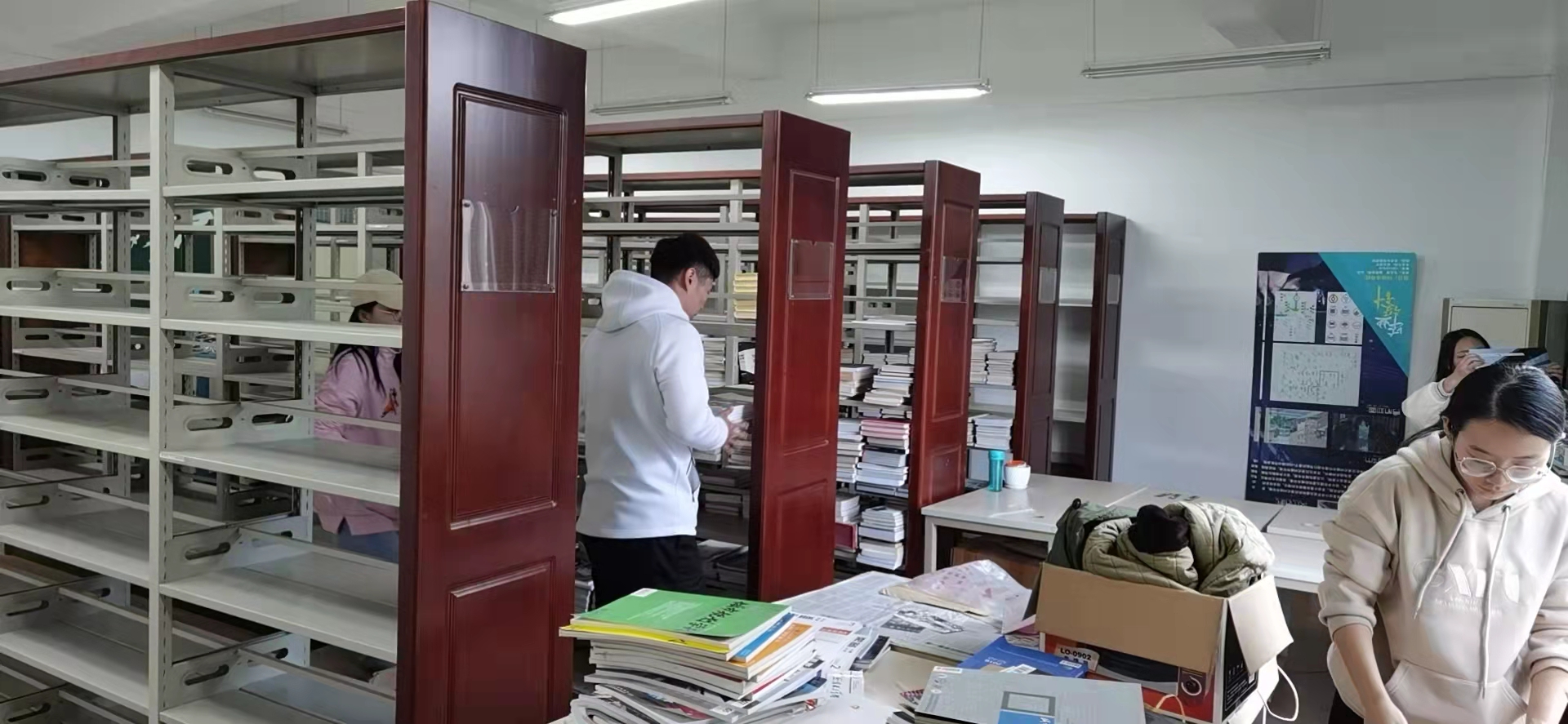会议结束后,新任资料室管理员和几位硕博士紧锣密鼓地点数了馆藏书目,清理打扫了即将投入使用的资料室,让图书资料室绽放智慧之光。期待尽快投入正常运转,为师生教学科研服务。