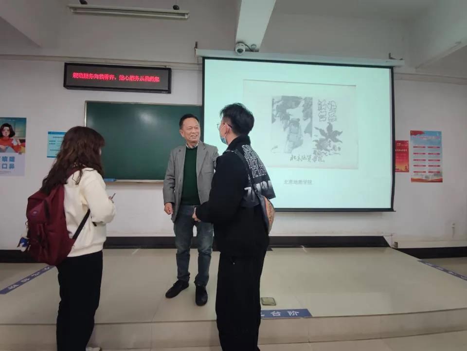 在第二部分中,刘宇老师分了四个阶段来介绍中国地质大学的发展历史,在1987年国家教委批准武汉地质学院更名为中国地质大学,中国地质大学作为我国地质领域人才培养的摇篮,秉承“艰苦朴素、求真务实”校训精神,在进入新时代中上天、入地、下海、登极,地大人正踔厉奋发、砥砺前行。之后,刘宇老师又相继展示了一些地大校园历史照片,让在座同学们大饱眼福。在最后的提问互动环节中,刘宇老师教导同学们要养成搜集资料、文献的好习惯,对艺术创作是非常有必要的。