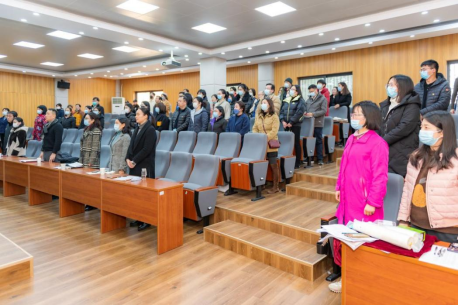 学院党委书记郭秀蓉致闭幕辞。郭书记对学院全体教职工一年来的辛勤工作和努力付出表示了肯定,希望新的一年学院专业发展和学科建设等各方面取得新的进步,并祝愿大家元旦快乐,阖家幸福。会议在《国际歌》声中顺利闭幕。