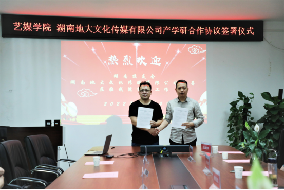 与湖南地大文化传媒有限公司合作基础良好,希望双方以协议为起点,学院发挥师生科研力量,企业发挥产业优势,共同落实落地,携手推进人才培养、文创推广、学术交流、产学研合作等事宜,力争实现校企合作、资源共享、互利共赢、共同发展的双赢局面。