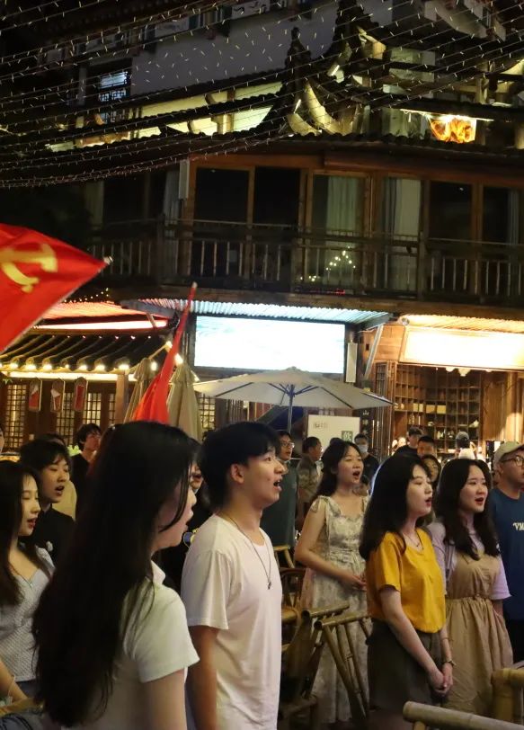 吃过晚饭后,大家在这处处充满土家风情的古镇游玩。晚上八点半,大家纷纷来到施南茶局,体验当地特色的茶文化,观看傩戏和当地独特的扬琴演奏等。我们的同学在当地唱响了地大的校歌,并有同学与老师一起参演,共同展示出当地音乐特色。在一阵阵呼声中,节目接近了尾声,今天一天的行程也在凉爽的夜晚结束。在恩施的采风也将接近尾声,明天下午我们将会奔赴下一个地点,也希望同学们在这两天当中有所得,有所获。