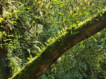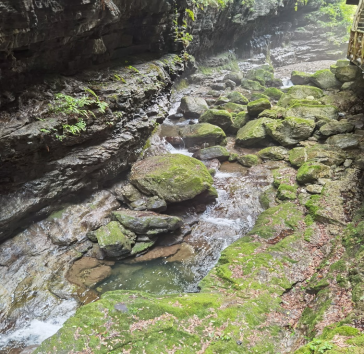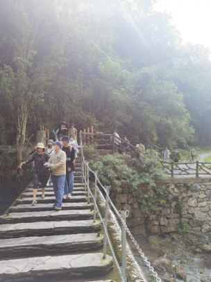 入眼是一片苍翠欲滴的连绵山脉,仔细一看是生机勃发的树木翠石,花草昆虫。峡谷有许许多多望不到头的阶梯,同学们拿起相机,摁下快门,在一声声惊叹之中开始了今日的旅程。