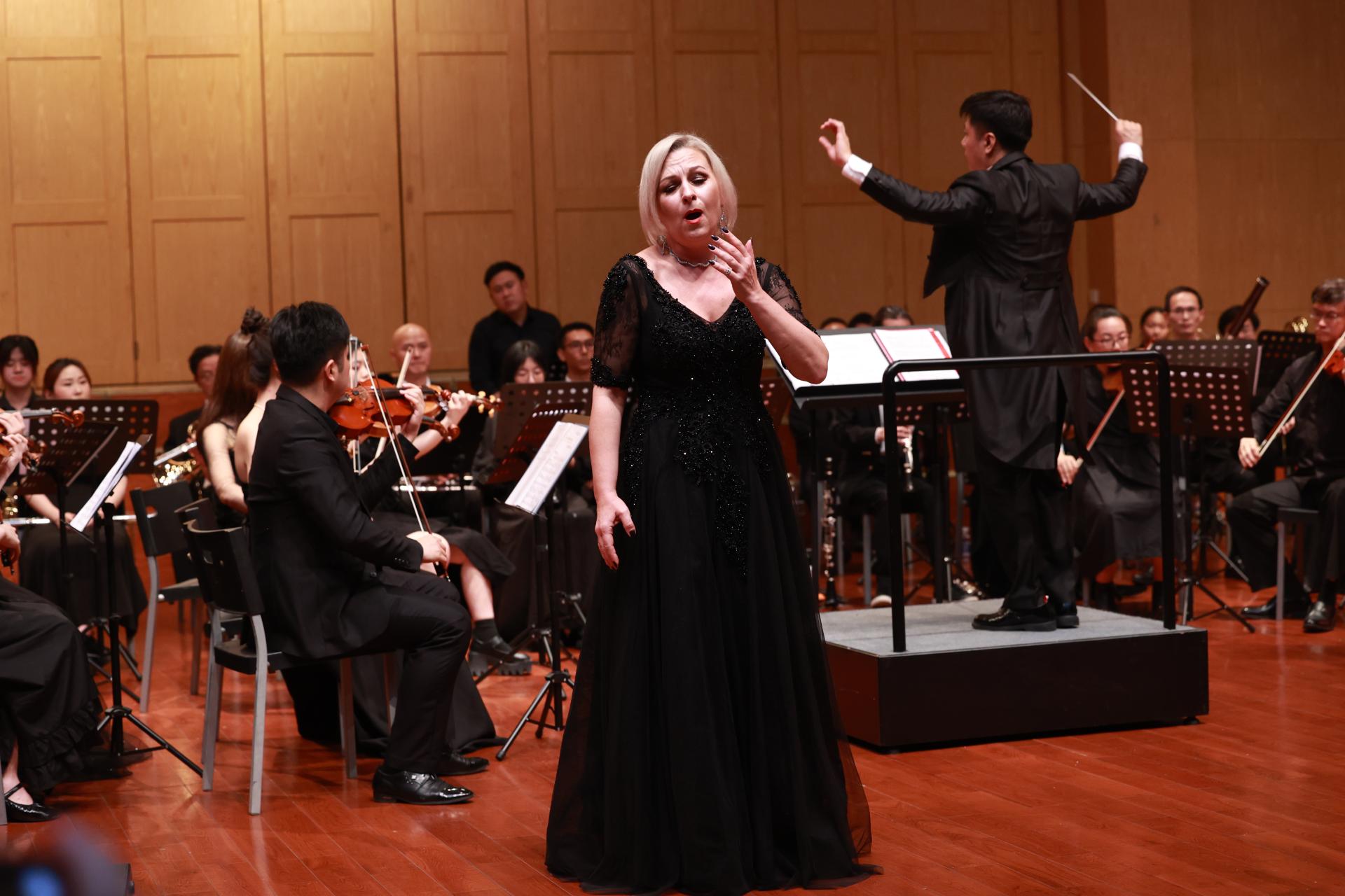 特邀俄罗斯艺术科学院院士——来自莫斯科国立柴可夫斯基音乐学院的尤里·迪登迪(Yuri Didenko)教授和叶卡捷琳娜·斯古斯尼琴科(Ekaterina Skusnichenko)教授呈现了《莫扎特第二十三钢琴协奏曲第二乐章》和普契尼歌剧选段之咏叹调《我亲爱的爸爸》,为校庆送来了万里之外的美好祝福。