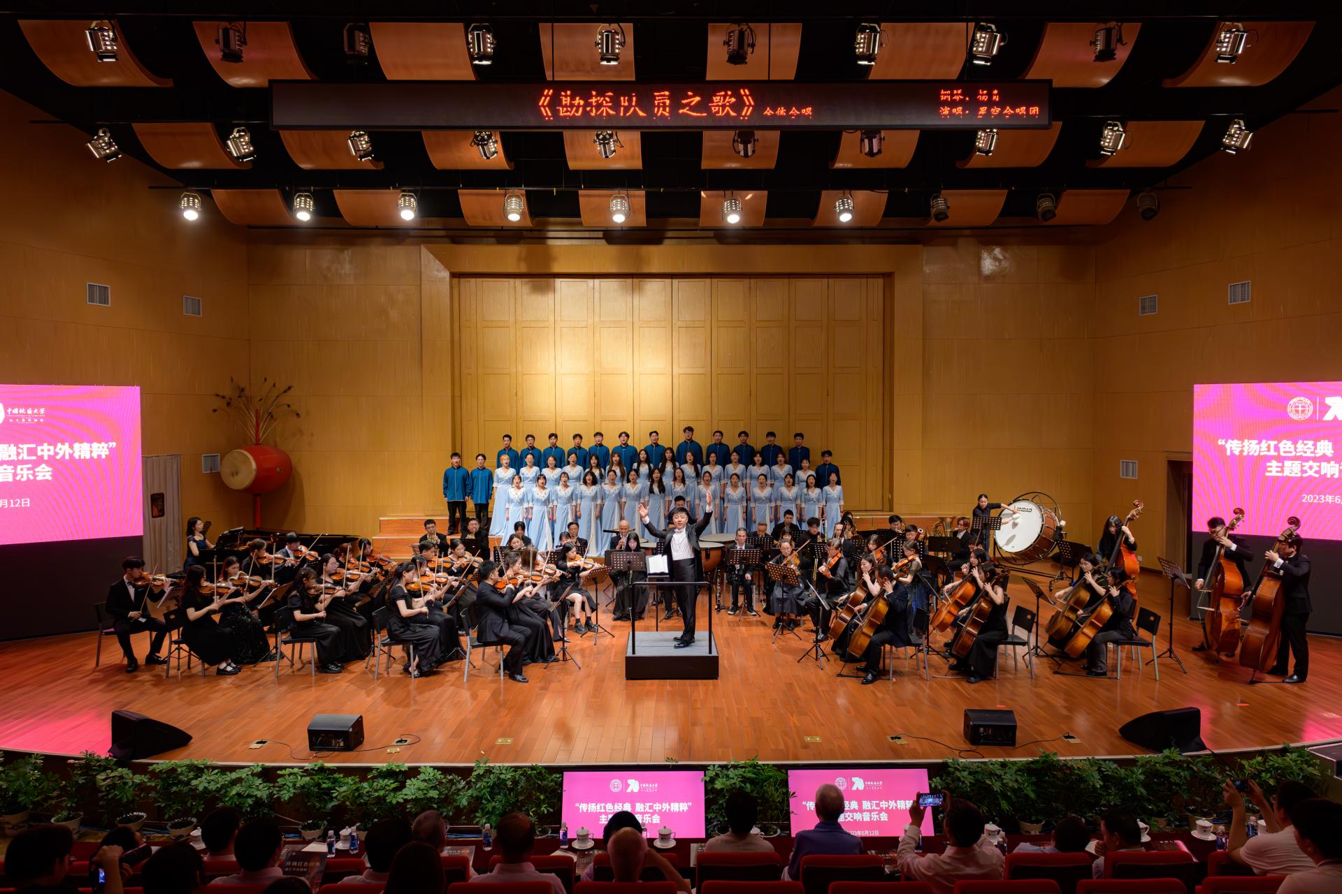 星空合唱团、室内乐团和“阳光”爱乐交响乐团共同奏响了《勘探队员之歌》。优美动听的旋律回荡在音乐厅的每一个角落,催人奋进的歌声点燃了每一位地大人火焰般的热情。大家全体起立,齐声共唱校歌《勘探队员之歌》。