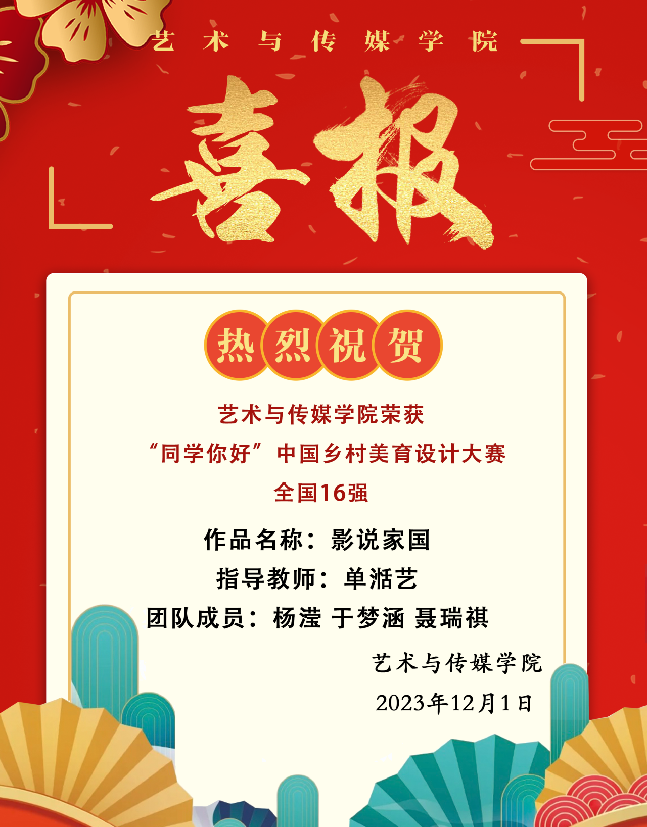 喜报!热烈祝贺色色视频 荣获“同学你好”中国乡村美育设计大赛全国16强!