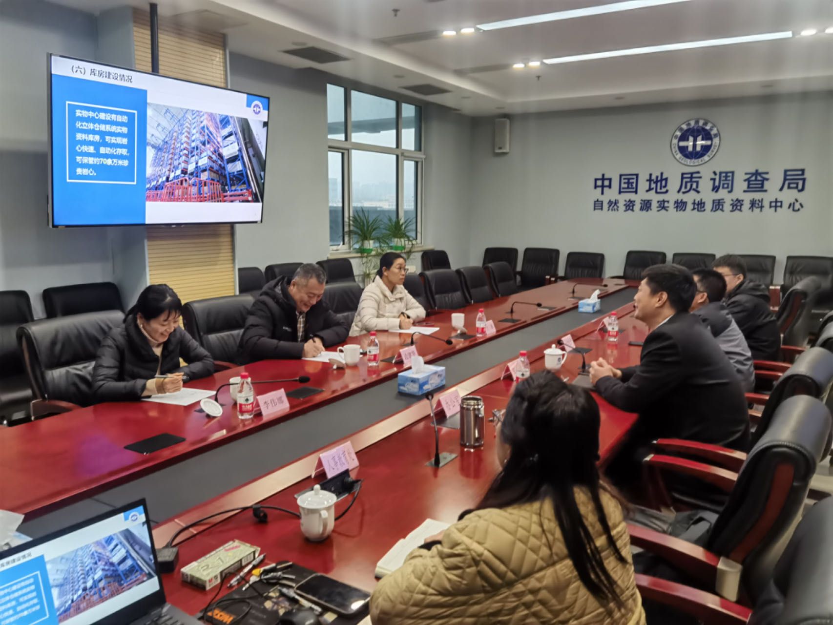 党委副书记边建华、办公室主任李伟娜和新闻传播系主任宁薇一行前往中国地质调查局自然资源实物地质资料中心(以下简称“实物中心”)走访调研。