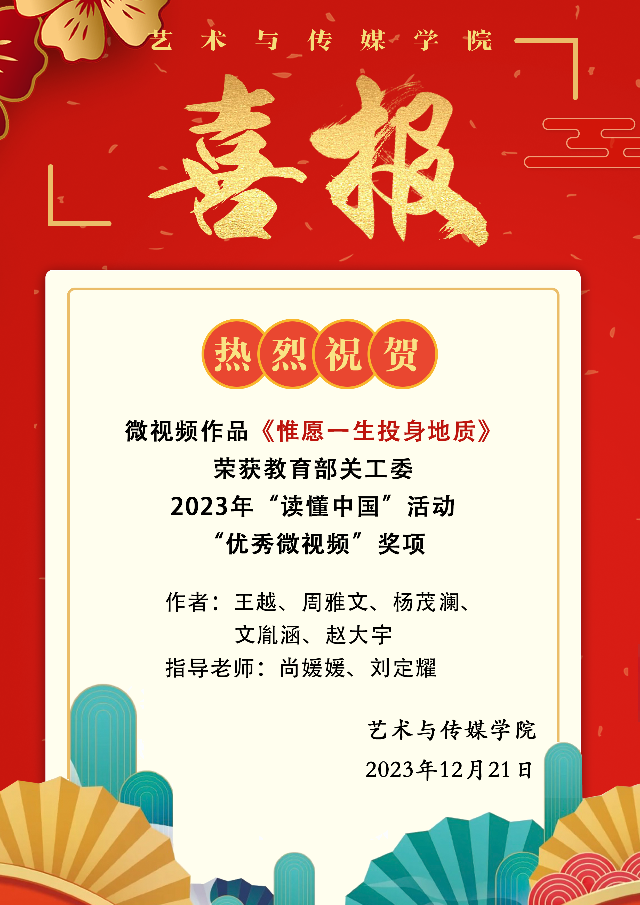 优秀微视频《惟愿一生投身地质》是色色视频 学生王越、周雅文、杨茂澜、文胤涵、赵大宇在尚媛媛、刘定耀两位老师的指导下,以地球科学学院退休教师曾广策教授为典型人物制作而成的,作品教育年轻的地质人“只问信仰,只问初心,只问感恩,无问其他。”