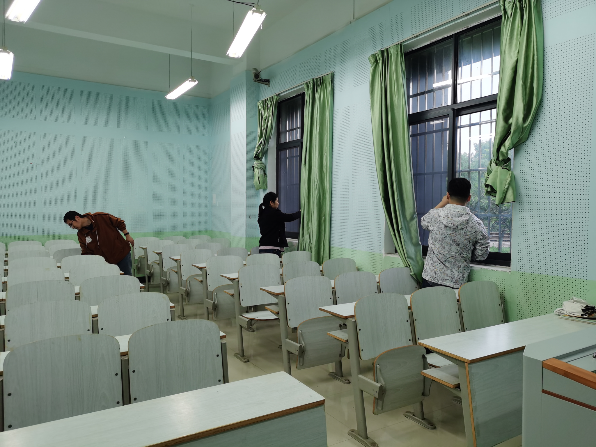 三个楼栋外围及楼内、各专业教室、学生寝室开展安全自查工作。