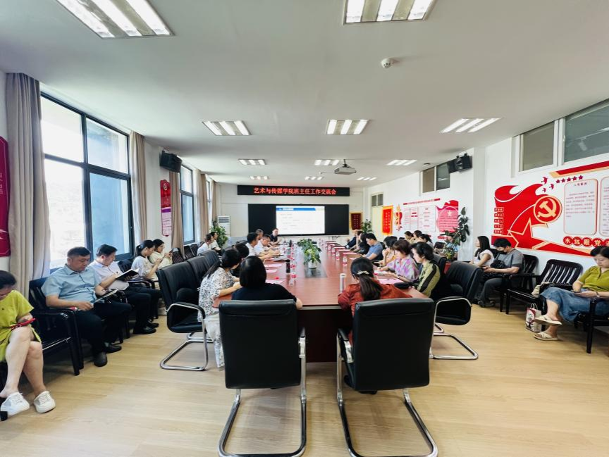在艺媒楼1209会议室召开了班主任工作交流会,学院党委书记晋曦,副院长杨喆、彭静,党委副书记边建华,本科生班主任,院直全体老师以及学工组专兼职辅导员参加本次会议,会议由学院党委副书记边建华主持。