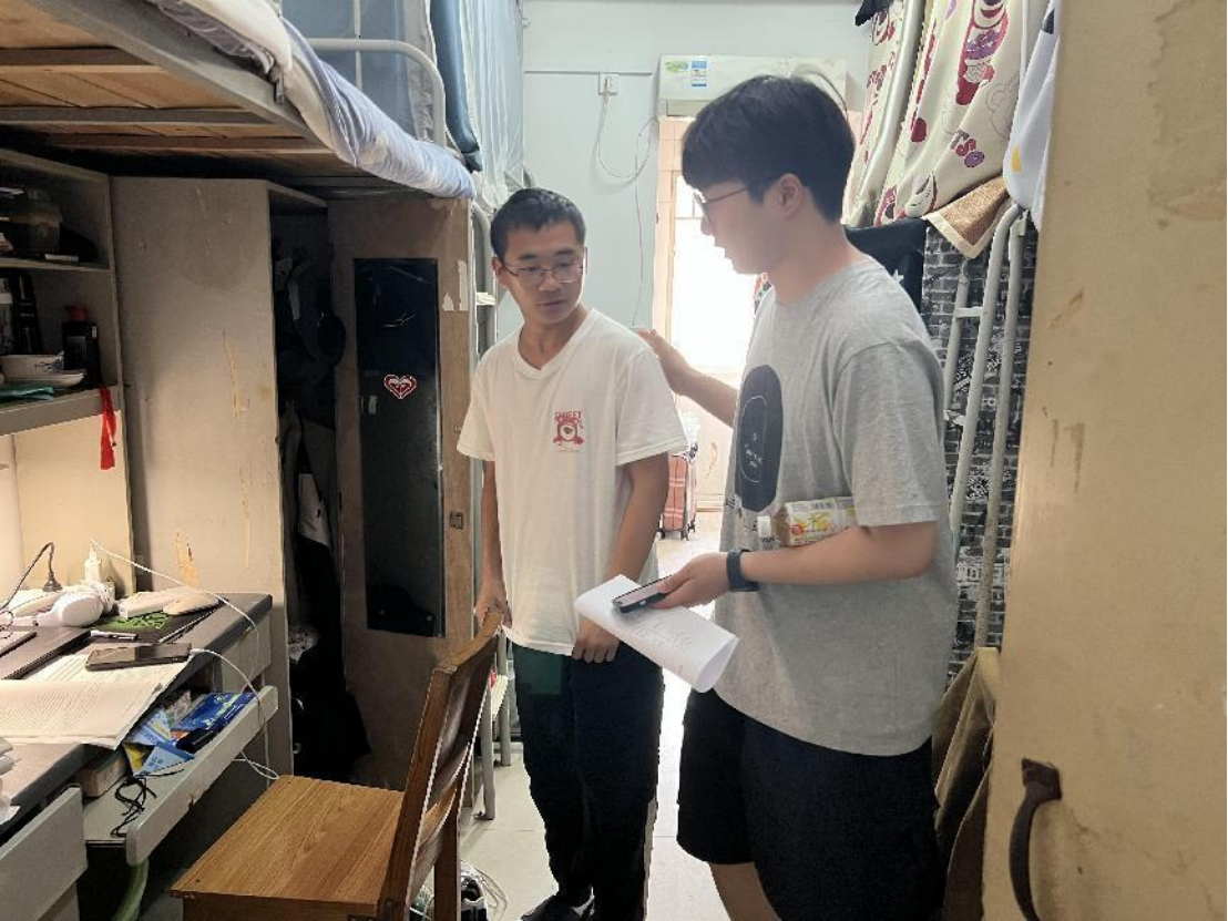 时值端午节假期,为严格落实学生假期学习生活、纪律规范及安全工作,学院于6月7日开展了一次全面的宿舍走访活动。在学院党委副书记边建华的带领下,学工组全体专兼职辅导员深入学生宿舍,了解学生动态,排查假期期间的卫生安全隐患。