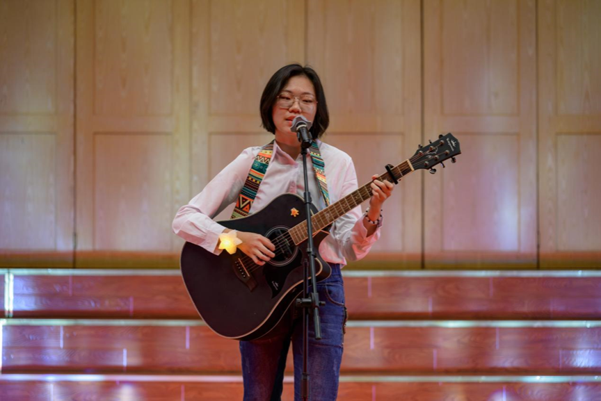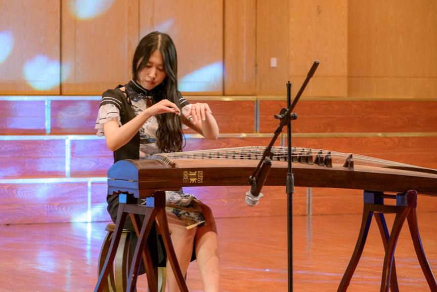 在互动抽奖环节,抽奖时的紧张刺激与开奖后的激动兴奋点燃了整个会场。随后,李佳园、李怡萱同学带来了民乐串烧。古琴和古筝音色婉转、穿透力强,带给我们一个纯净的心灵世界。由石巍、王忆燃演奏《保卫黄河》慷慨激昂、气势磅礴。在最后,晚会以2024级新生辅导员及助理班主任合唱的《NEW BOY》结束。