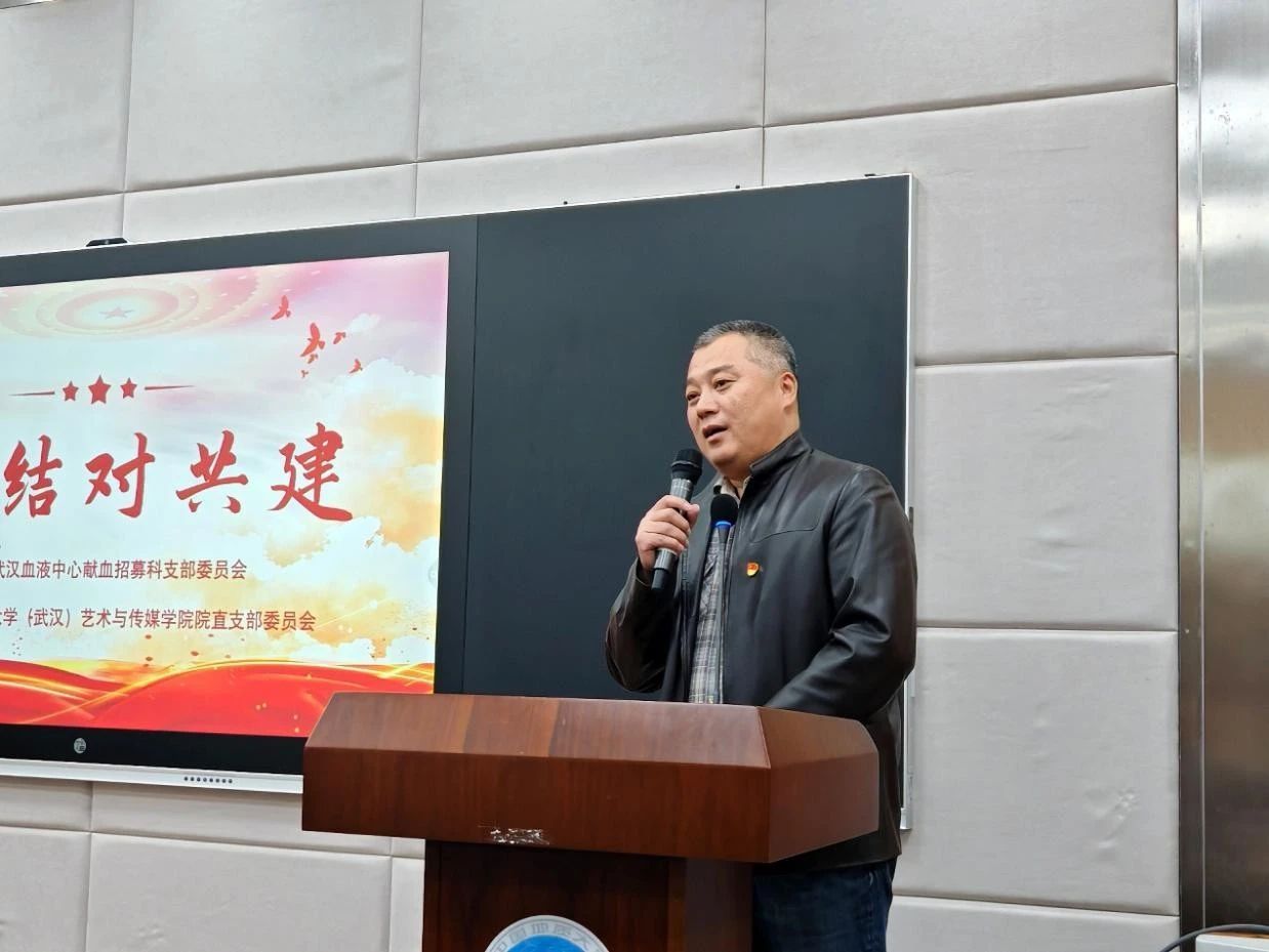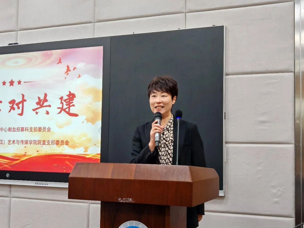 在艺媒楼1104报告厅开展了“热血担当,青春有我”无偿献血主题分享及支部共建活动。武汉血液中心党委委员、副主任杜思颖,武汉血液中心献血招募科王丹,武汉血液中心献血招募科党支部书记顾军,色色视频