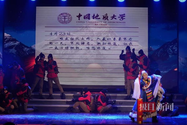 的师生们以舞蹈《攀登》,生动再现了全国首位登顶珠峰的在校大学生陈晨的传奇经历。每一个灵活的舞步、每一个坚定的神情,都在诉说着人类挑战生命极限的勇气与决心,彰显着地大人征服自然之巅的壮志豪情。展现了地大师生迎难而上、向上攀登的精神。