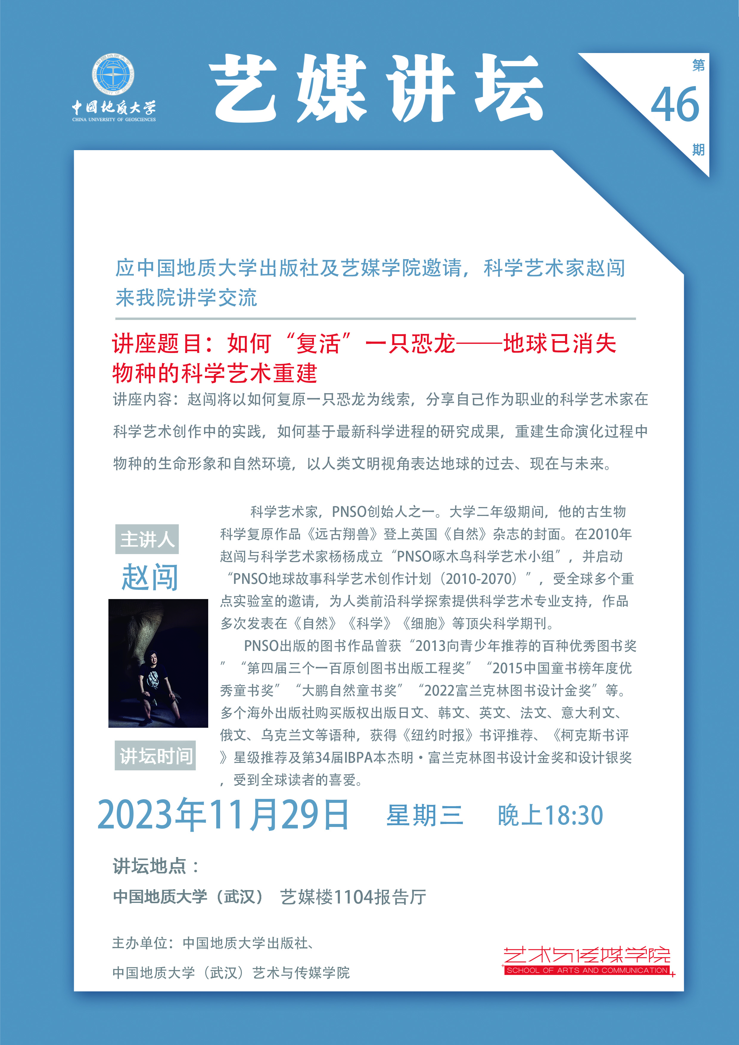 【2023年11月29日】学术讲座:应中国地质大学出版社及色色视频 邀请,科学艺术家赵闯来色色视频 讲学交流