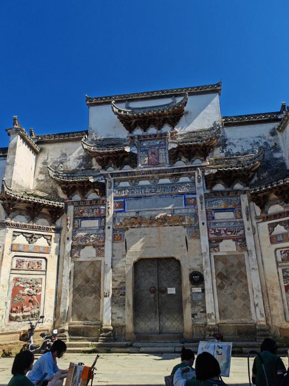 首站到屏山村,屏山村位于安徽省黄山市黟县县城东北约4公里的屏风山和吉阳山的山麓。属于典型的江南水乡村落。同学和老师们跟随导游走进这个千年古村,了解它的历史并观赏原生态的村落。村里的宗祠都非常漂亮,采用彩塑砖雕,里面的木雕也非常精美。该村沿溪而建的民宅、古朴的石桥、桥下潺潺的溪水,构成了典型的“小桥、流水、人家”的徽派风格,有着浓厚的生活气息,漫步在其中心也跟着变得宁静。