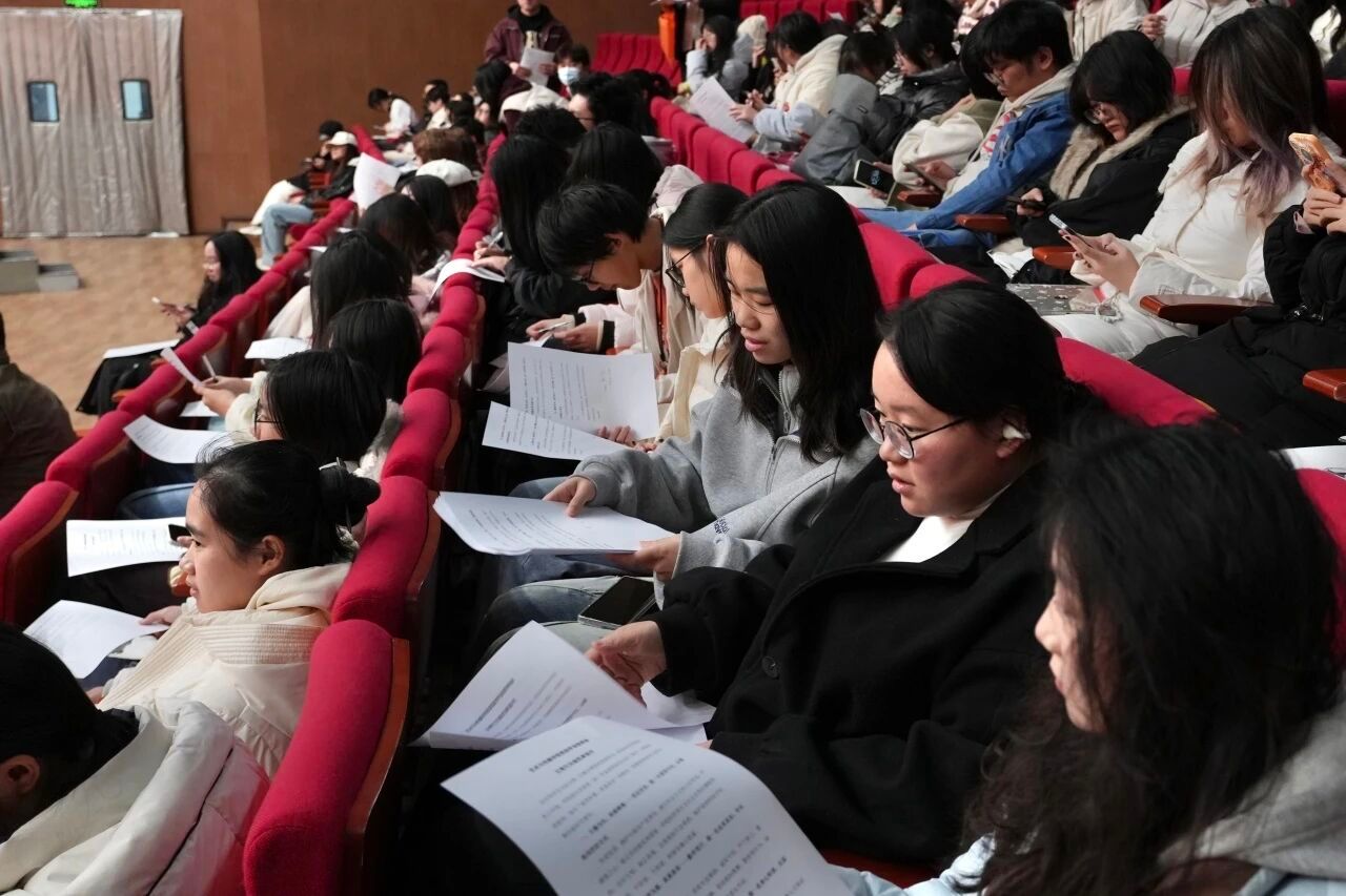 于北区音乐厅举行奖助学金获得者暨文明和谐宿舍表彰大会。学院党委副书记边建华,团委书记单湉艺,专职辅导员陈习良、曾戈晖,学工组兼职辅导员,2025 年全体本、研奖助学金获得者,2025 年 10 月“文明和谐优秀宿舍”的全体成员、各班级班长、生活委员、所有宿舍长共同参会,本次大会由辅导员陈习良主持。