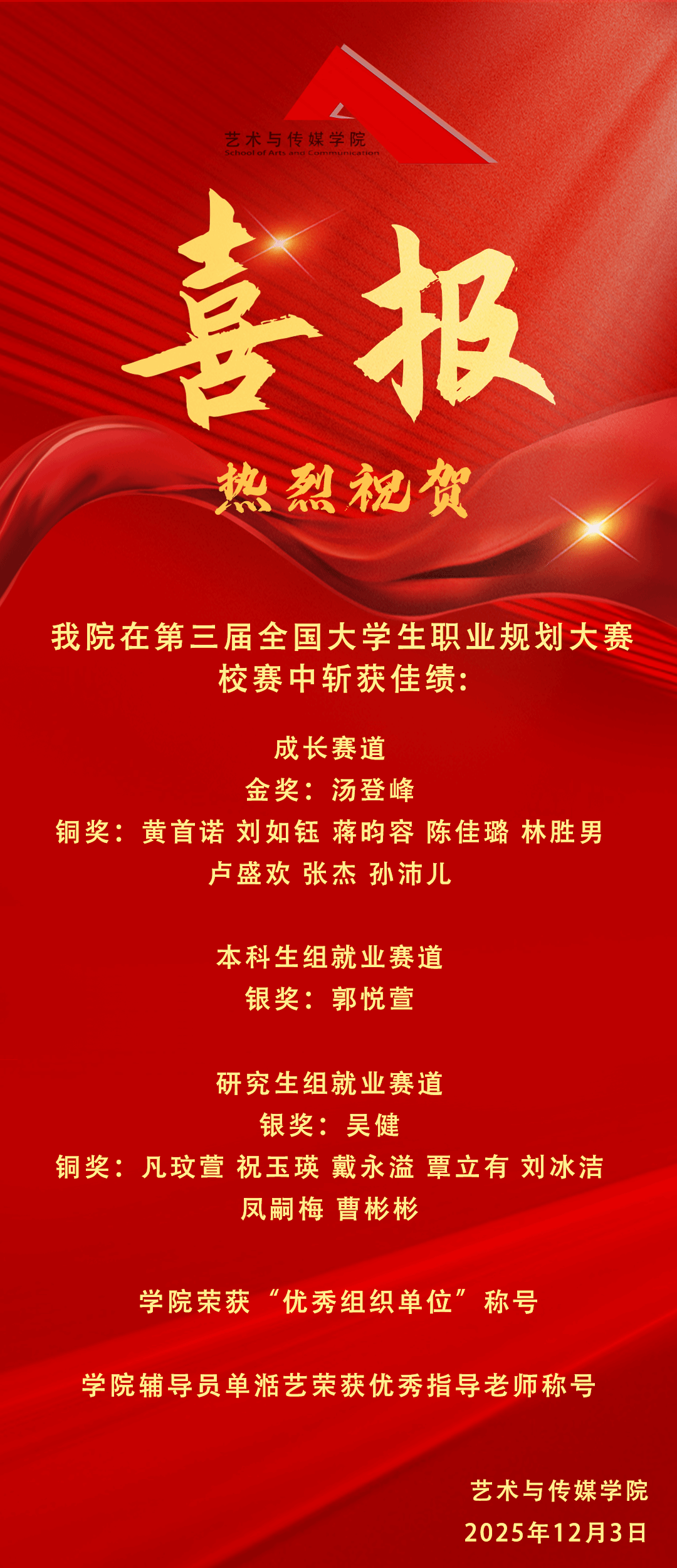 的同学们表现出色,斩获多项荣誉。成长赛道方面,汤登峰荣获校级金奖,黄首诺、刘如钰、蒋昀容、陈佳璐、林胜男、卢盛欢、张杰、孙沛儿荣获校级铜奖;就业赛道方面,郭悦萱荣获本科生组校级银奖,吴健荣获研究生组校级银奖,凡玟萱、祝玉瑛、戴永溢、覃立有、刘冰洁、凤嗣梅、曹彬彬荣获校级铜奖。此外,色色视频