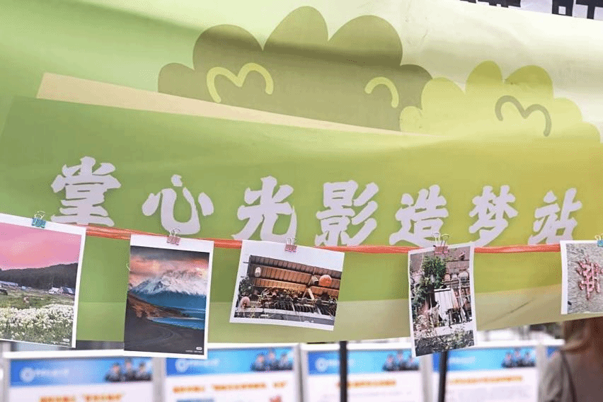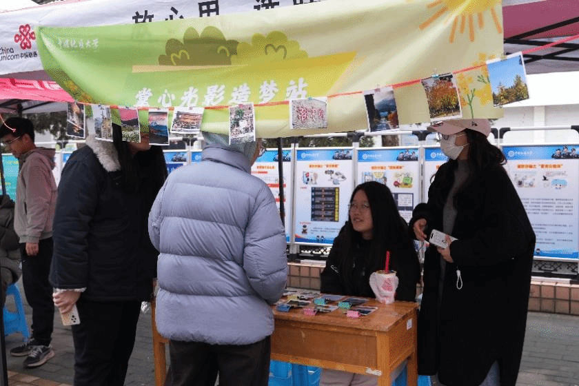 青年志愿者协会在西区体育馆前开展了“掌心光影造梦站”雷锋月主题摆摊活动,用镜头传递温暖,以专业知识服务师生。
