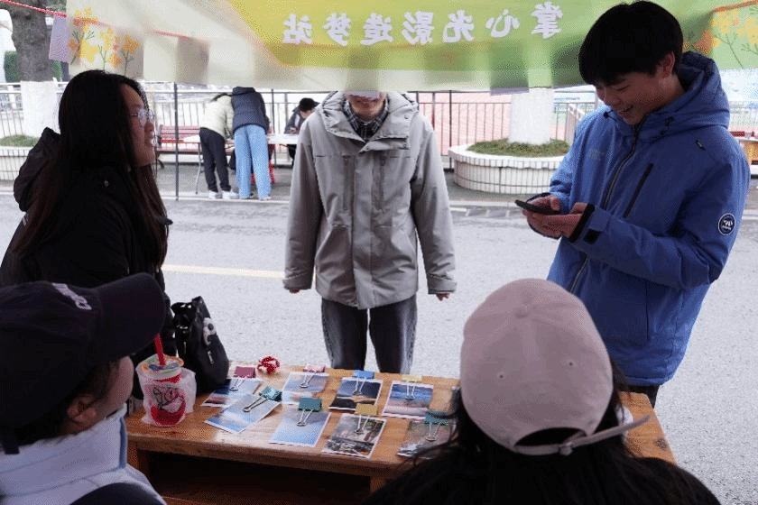 活动当天上午10时,志愿者们准时布置好摊位,准备宣传资料。摊位共设三大特色环节:“摄影技巧分享环节”,志愿者们向同学介绍构图、光线、色彩等基础知识,并现场演示如何用手机拍出更具创意的照片;“后期处理服务环节”,志愿者们利用手机软件帮助同学调整照片参数,解答关于修图的常见问题;“特色活动区”,志愿者们邀请大家现场拍摄校园风光并提交作品,二至三小时后即可在摊位领取实体打印照,这一互动形式吸引了许多摄影爱好者前来咨询。