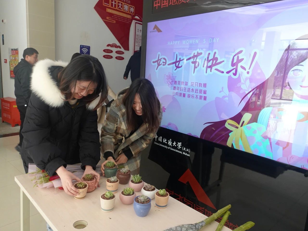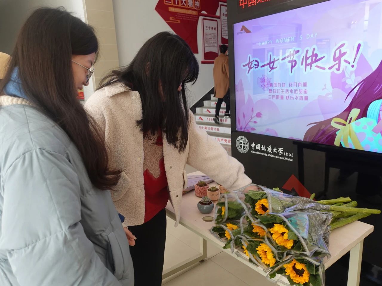 学生会和研究生会举办献花活动。用花束为全院女性师生同胞们送上最真挚的节日祝福,以花爱己,以花悦己,在忙碌的生活中进行简单的放松,在温暖美好的时光中回归心灵之美。