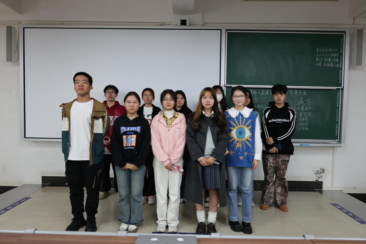 第六场比赛在北综楼305教室举行,由陈雅雯、敖汉斌、唐翼舟担任评委。本次辩题是“年轻人应该先攒钱/享受生活”,正方“我方观点都队”和反方“从容应队”就此辩题展开了激烈的辩论。正方围绕年轻人应该先攒钱这一观点引经据典并结合热点,让观点既有深度又具时代感。正方辩手清晰地指出了攒钱在诸多方面的优点,提出攒钱可以提高抗风险能力,为年轻人的未来提供了坚实的保障,让他们在面对生活的不确定性时能够更加从容不迫。反方的论述也同样精彩,他们认为通过享受世界探索世界,无疑为年轻人打开了一扇扇通往未知的大门。在这个过程中,他们能够拓宽视野、丰富阅历,从而实现真正的自我成长,这远比仅仅将目光局限于攒钱更为深远和有意义。反方辩手还引用名言、调查和具体实例的做法,更是为观点增添了坚实的依据。最终,正方“我方观点都队”赢得比赛,正方三辩黄子怡同学凭借其出色的表现荣获最佳辩手的称号。