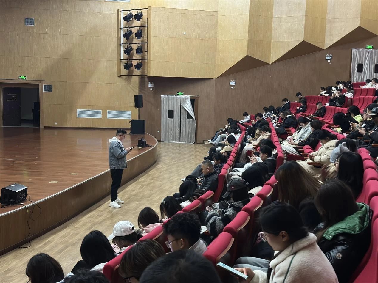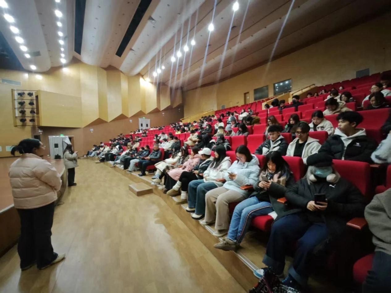2024级本科生春季学期第一次晚点名活动在北区音乐厅顺利举行。学院党委副书记边建华、学工组辅导员曾戈晖、兼职辅导员吴健、朱晓蕾以及2024级全体同学参加本周的晚点名会议。