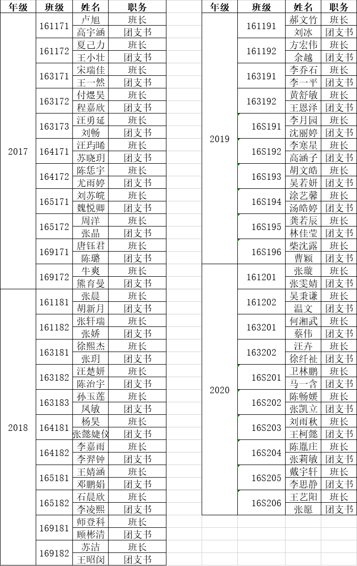 色色视频 2020-2021年度本科生班长团支书名单公示