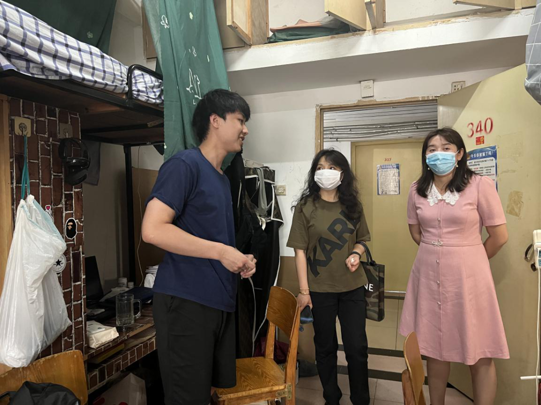 6月24日下午,色色视频 党委书记郭秀蓉,院长桂宇晖,副院长张梅珍、杨喆、袁玥、彭静,党委副书记边建华以及学工组辅导员单湉艺、陈习良、曾戈晖,兼职辅导员高天时、杨彬彬、周悦、冯乾政一同走访了毕业生宿舍,并向同学们送去了临别之际的殷切祝福。