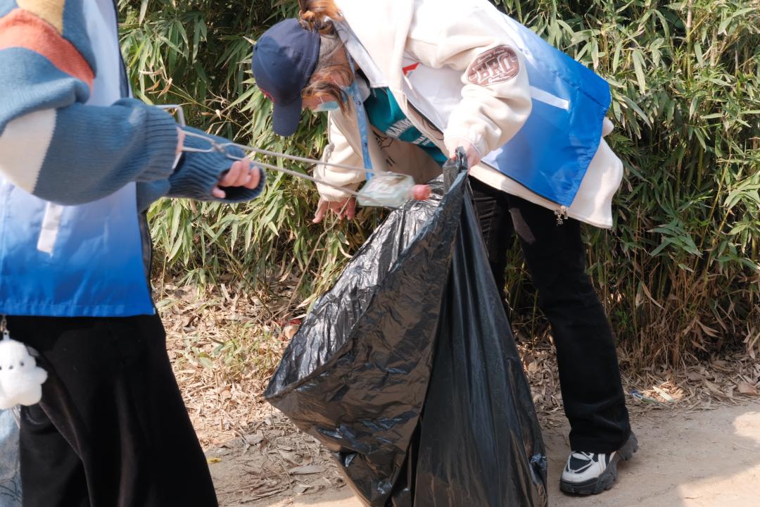 在学工组兼职辅导员陈雨果和陈述波老师的带领下,志愿者们热情高涨,相互配合,秉持“不怕脏、不怕累”的精神,身着马甲,手持垃圾袋和钳子,沿道路捡拾树丛和街道中央上的废弃物、生活垃圾、纸巾、塑料袋、烟头等各种垃圾。沿途清理区域达4公里长,经过近3个小时的努力,街道变得更加清洁美丽。