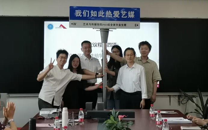 开展毕业生赠予学院纪念品活动,王恩泽、李一平、余跃、张巍作为2023届本研全体毕业生代表,为学院献上“我们如此热爱艺媒”标志牌,展现同学情、传递师生情、赓续校园情,表达出2023届毕业生对学院美好的祝福,营造学院温馨的毕业季氛围。