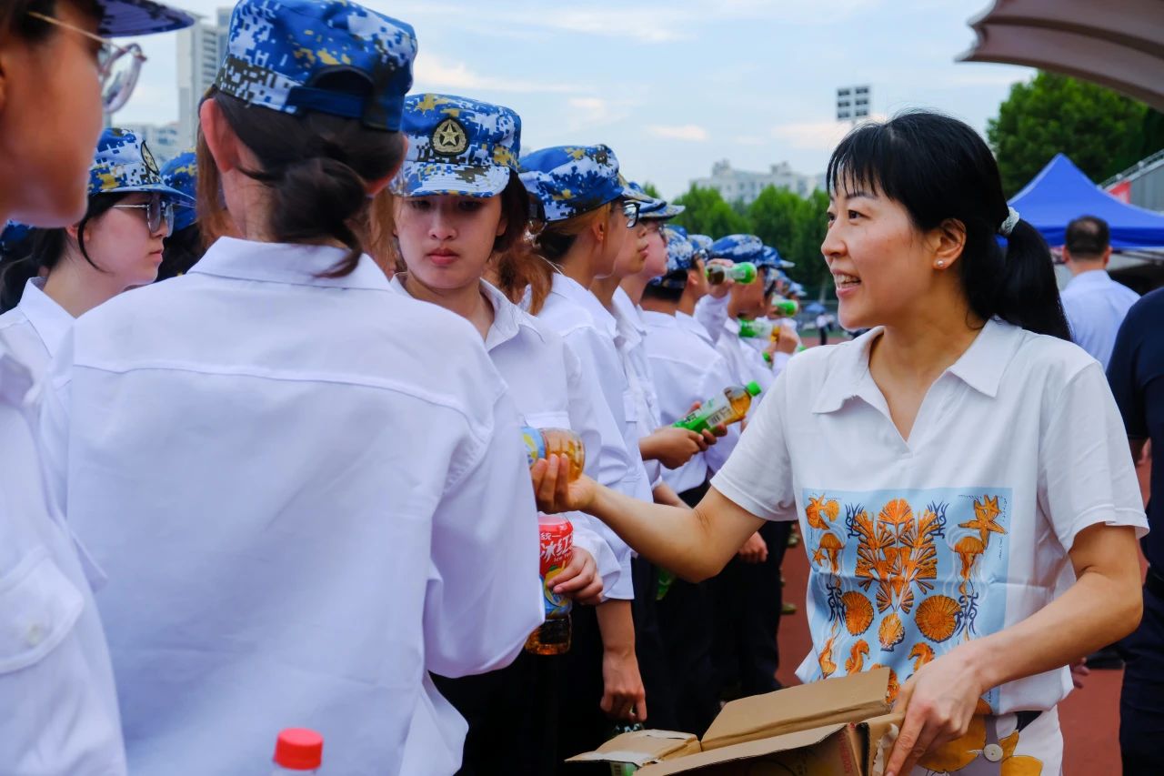 晋书记代表学院为同学们送上学院为大家准备的饮料。天气炎热,希望能为同学们带来一点清凉。晋书记聊起自己当年的军训时光,军训虽苦,但却是同学们迈入大学的第一课。他鼓励同学们要迎难而上,希望此次军训能为同学们的大学生活打下良好的基础。希望大家在军事训练中取得自己最得意的成绩!