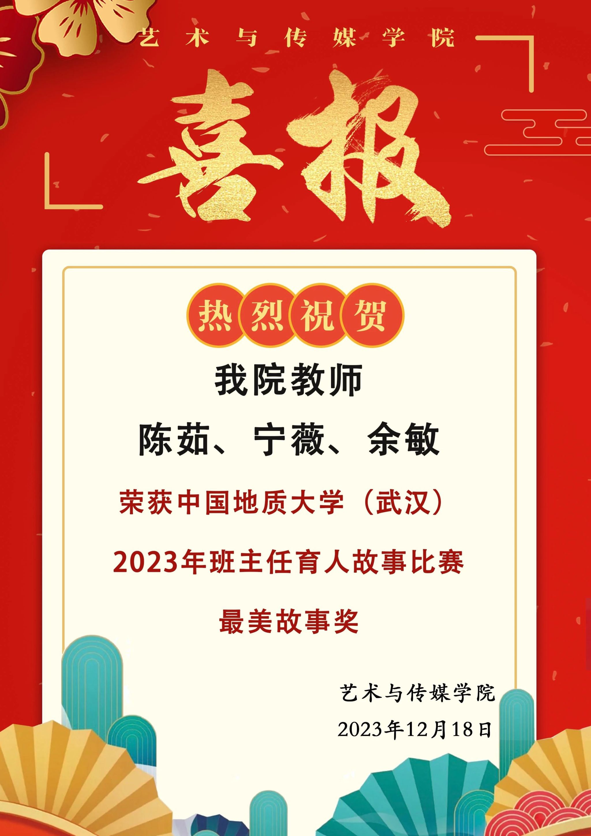 喜报 | 热烈祝贺色色视频 教师陈茹、宁薇、余敏荣获中国地质大学(武汉)2023年班主任育人故事比赛最美故事奖