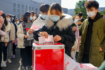 选举由学院党委书记郭秀蓉主持。上午9点,学院师生陆续到达学院楼前排好队伍并认真填写了选民证。统计人数后,学院党委书记郭秀蓉对相关选举事项进行了说明。全体师生听完讲解后仔细填写选票,依次走到投票箱前,郑重地投下自己的选票。