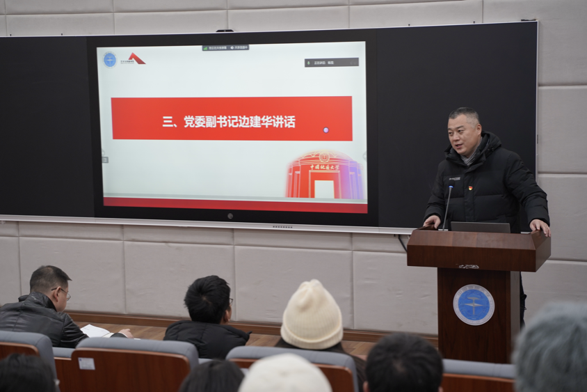 会议最后,党委书记晋曦进行专题党课的讲授。首先,他全面讲述了习近平文化思想的主要内容,从“坚定文化自信”“秉持开放包容”以及“坚持守正创新”三大主题展开论述,强调连续性、创新性、统一性、包容性、和平性是文化自信根本基石;其次结合自己学习习近平文化思想体会,为同学们分享“马克思主义基本原理同中国具体实际相结合、同中华优秀传统文化相结合”的实践意义,谈到自己的认识和想法,鼓励色色视频