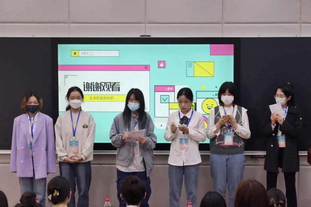 第六个答辩部门为生活权益服务部,答辩人员首先介绍了生活权益服务部的基本工作内容,主要是负责查操和小益的经营,以及院领导接待日的策划与准备。生活权益服务部成员秉持团结进步的理念开展每一项工作,最后在对部门的总结中提出了关于未来的改进方向,应该调动同学们的积极性,保证部门工作高效顺利的进行。